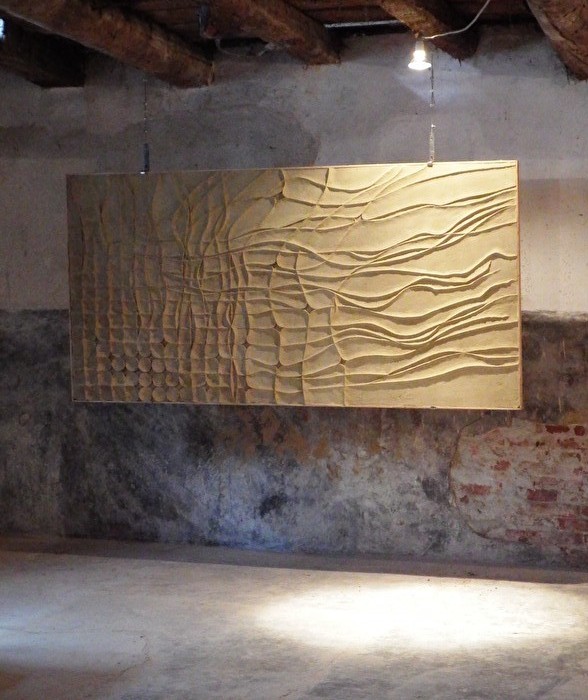 Nove, paese della ceramica. Luogo attraversato da corsi d’ acqua. Acqua che ha facilitato i trasporti e fornito la forza per azionare i mulini sorti per preparare gli impasti ceramici. Lungo la Roggia Isacchina, il corso d’acqua che attraversa il paese incontriamo due mulini. Il Mulino Antonibon Barettoni Bortoli è uno di essi. Luogo dove la stratigrafia della storia si legge nel colore e nel grado di ossidazione del ferro degli ingranaggi, dove la luce è filtrata dall’ opacità delle polveri, dove qualcosa delle superfici si sgretola perdendo la loro continuità materiale, ma restando pur sempre autentiche. Riporto sotto lo scritto di Antonio Bernardi, direttore artistico della XVIII Festa della Ceramica. Le sue parole hanno il potere emotivo di evocare l’ atmosfera respirata in quello spazio.Il Mulino Bortoli e le opere di Pasquale Difonzo e Isabella Breda